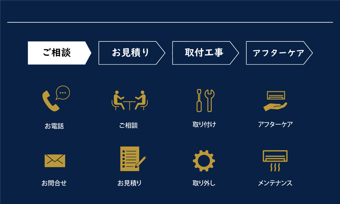 エアコン工事の進み方になります。